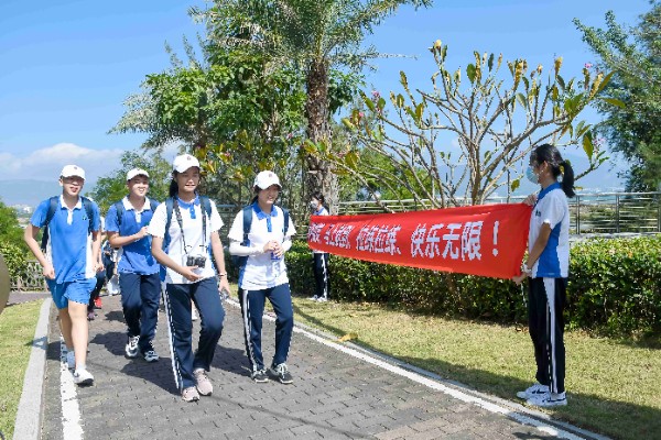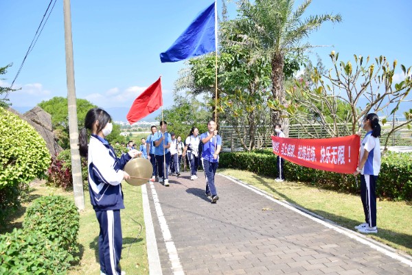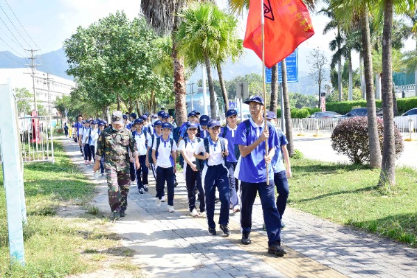 4日上午9时许,30公里行军拉练开始。欢快的军歌声和嘹亮的口号声不时传来,初三年级师生们从大鹏训练基地出发,怀着满心的期待踏上了从未体验过的长途拉练。同学们步履轻快,耳旁荡漾着愉悦的谈笑声与铿锵有力的军歌声。途中,许多人自发地拉起横幅、敲锣打鼓,为我们加油鼓劲,大家铆足了劲,默契地想着——不过来回三十公里,一定要轻松地走完!