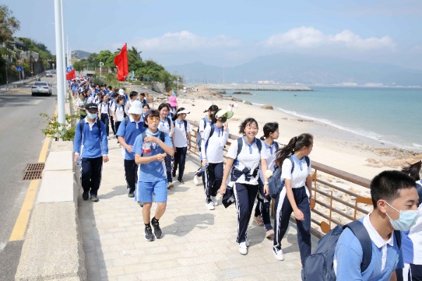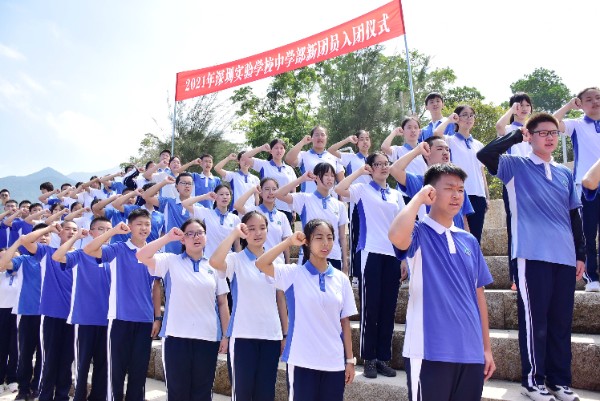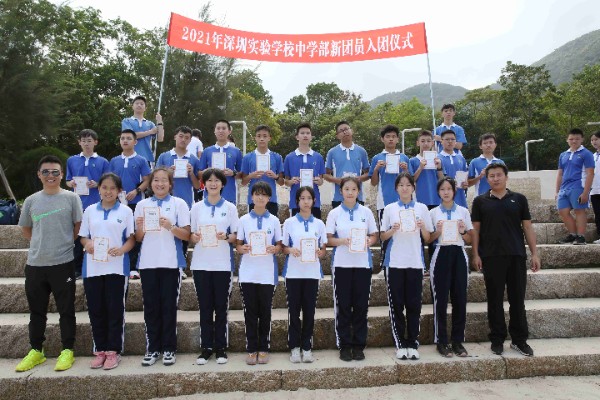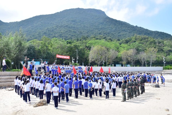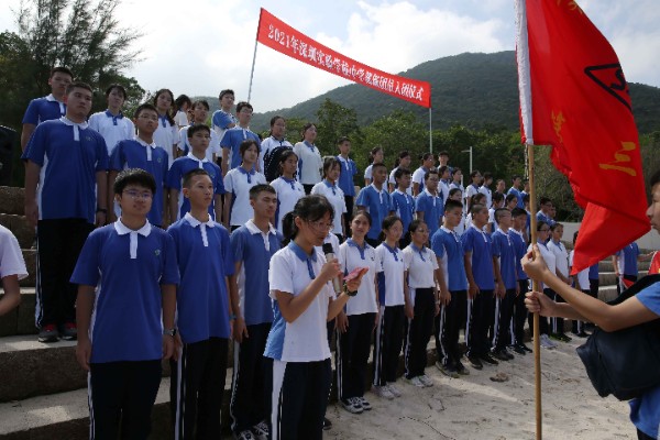 午间12时许,完成半程15公里的徒步,到达杨梅坑海滨,这里将举行隆重的新团员入团仪式。在碧海蓝天和鲜艳的团旗见证下,初三年级一批新团员佩戴团徽,宣誓加入中国共产主义青年团,立志为共产主义事业而奋斗。一批优秀义工、学生工作者也在此受到表彰。
