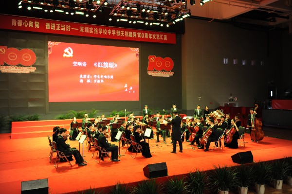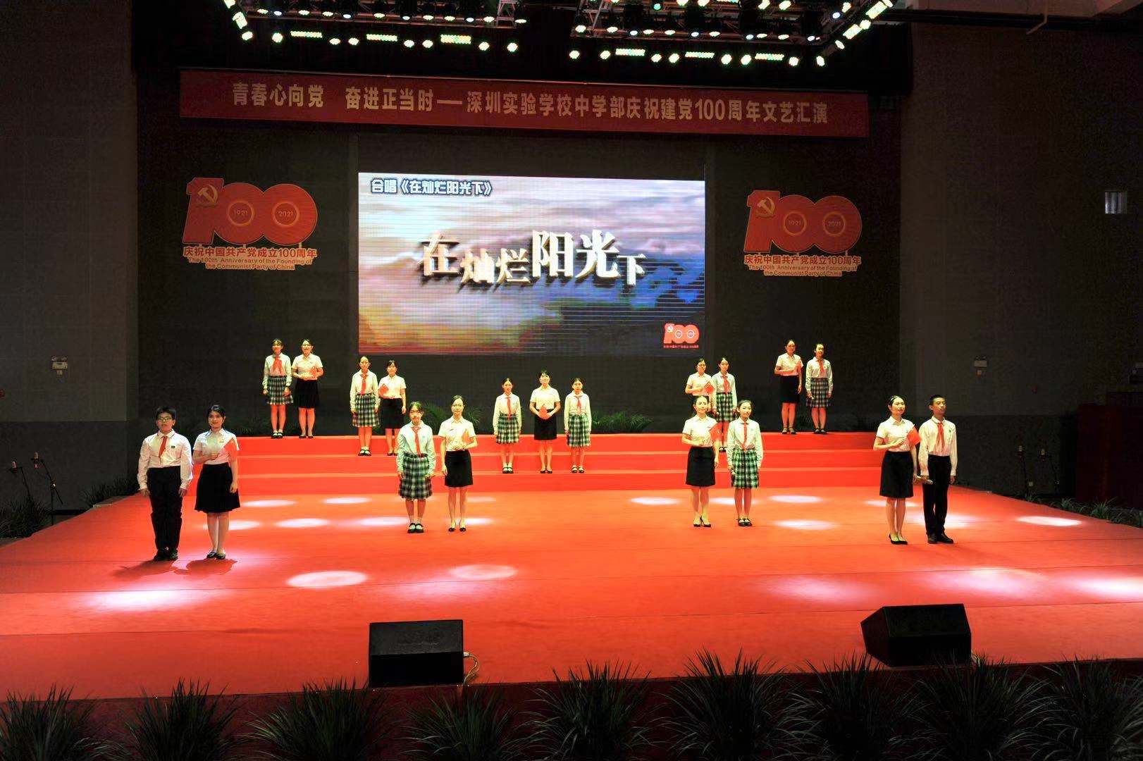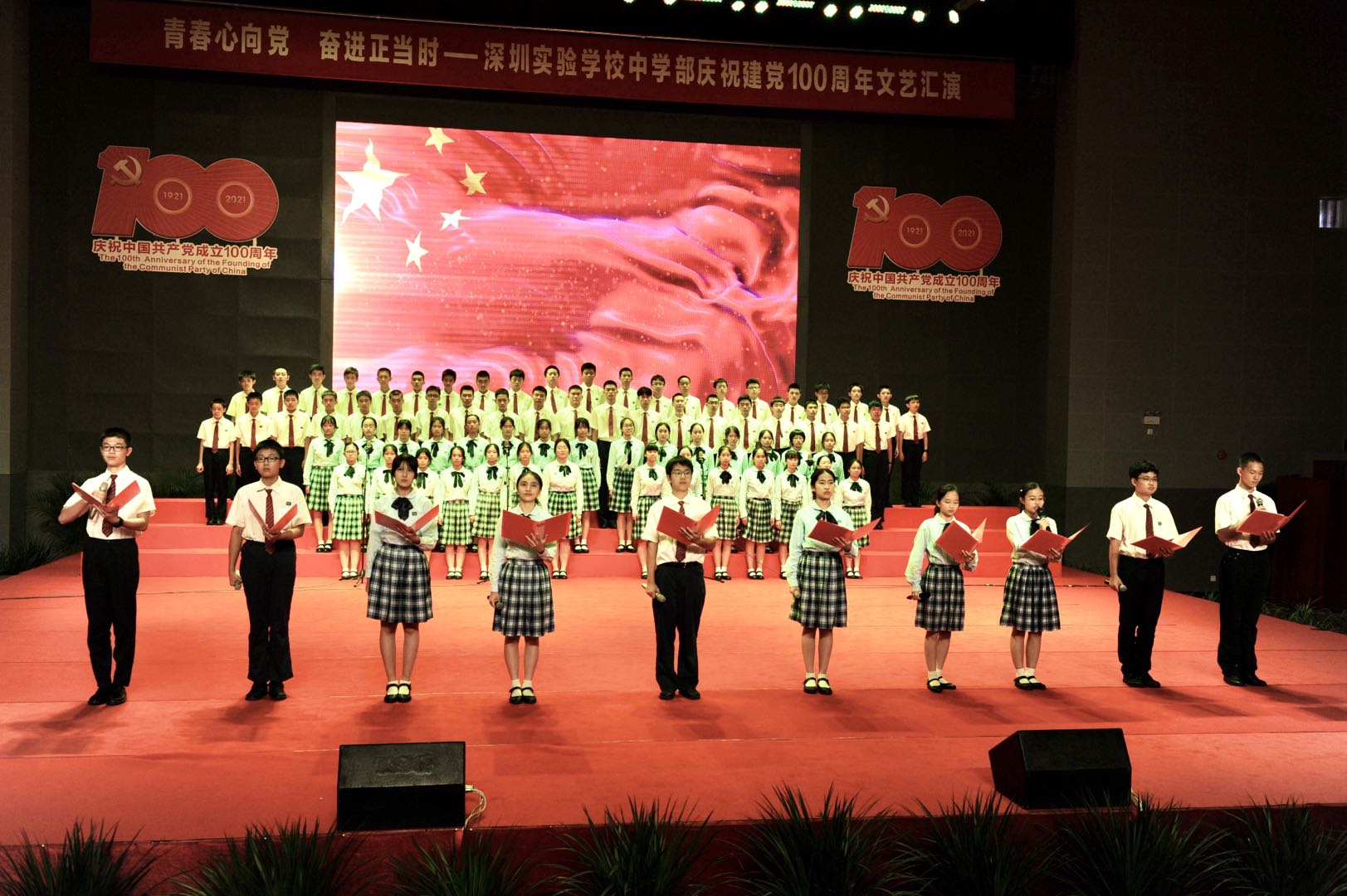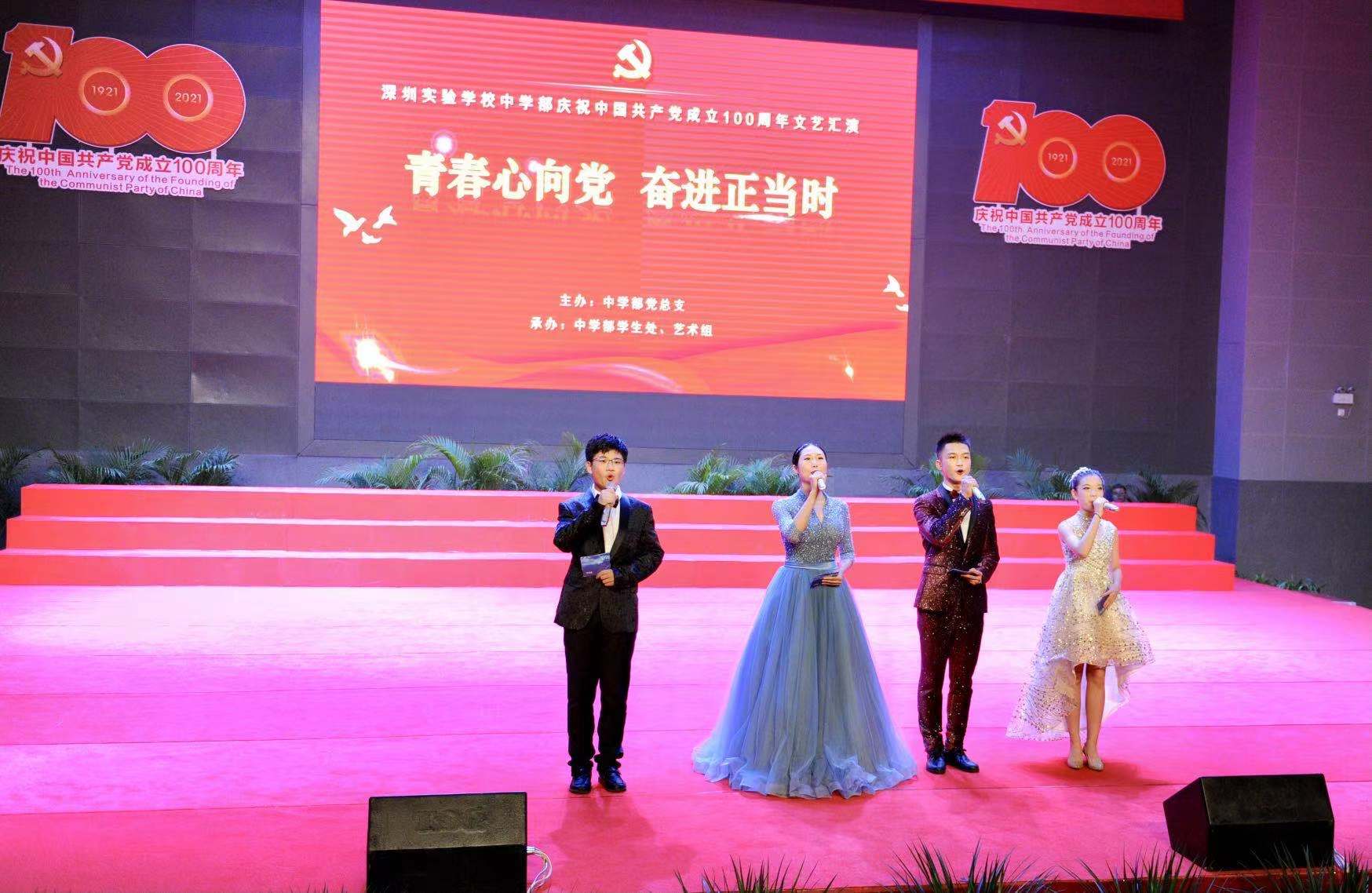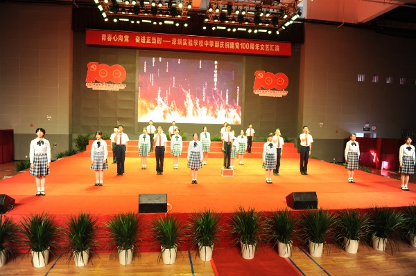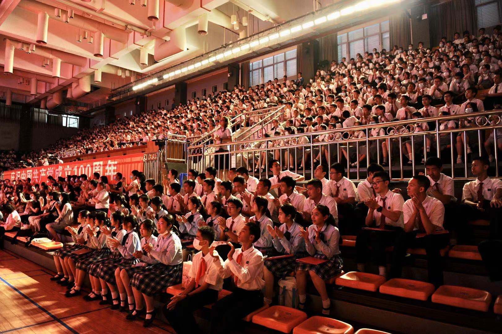 为庆祝中国共产党成立100周年,回顾党的光辉历程,讴歌党的丰功伟绩,进一步激发基层党组织活力,不断增强光荣感、使命感,2021年5月14日下午四点,中学部全体师生、集团总部领导、各学部代表以及部分家长代表,齐聚文体馆,观看“青春心向党 奋进正当时”庆祝建党100周年文艺汇演。活动由中学部党总支主办,学生处、艺术组承办。