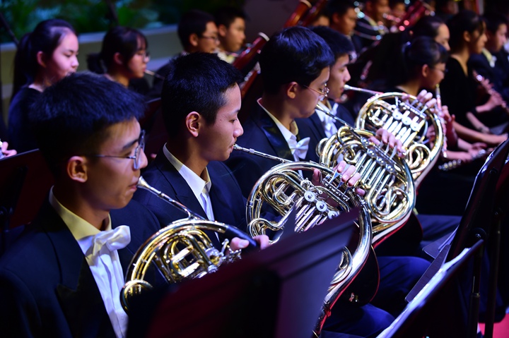最后的合唱《歌唱祖国》将音乐会推向了高潮。校学生交响乐团、中学部合唱团、舞蹈队及台下的全体观众均成为了演出者,共同高歌那一段段熟悉的旋律,一同歌颂祖国,迎接祖国新的华章!