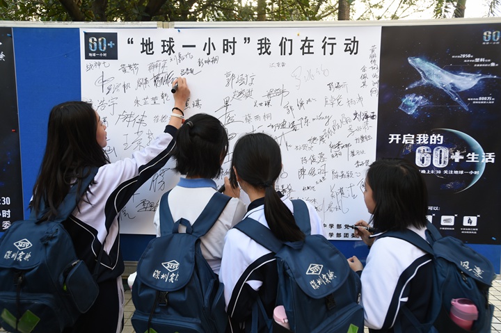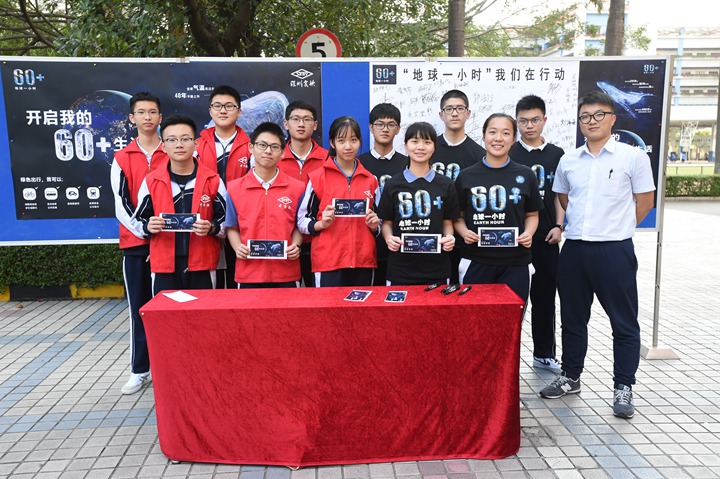 为响应保护地球环境、建设美丽家园的全球倡议,3月23日下午,由中学部党支部和团委学生会联合举办的“2018地球一小时”环保签名活动在东楼一楼前厅举行,活动旨在发起绿色生活的环保倡议,号召全校师生参与一小时,超越1小时,为蓝天做出实际的环保转变。