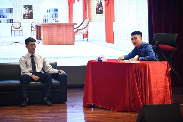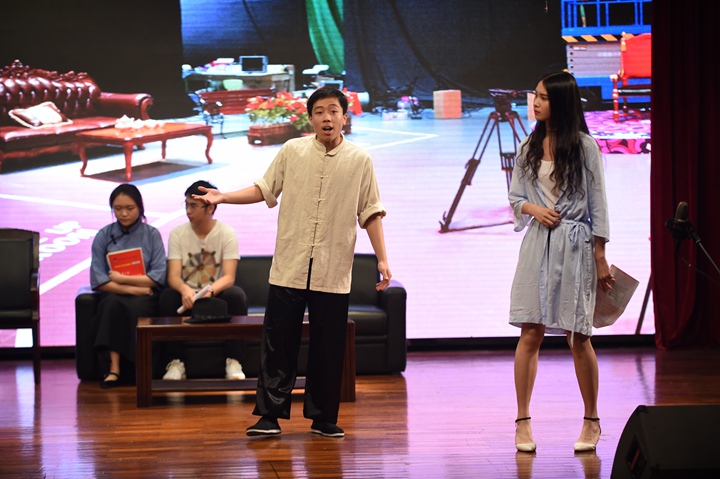 接着,高二(4)班同学根据经典剧目《雷雨》改编的现代校园剧《有雷无雨》。经典家庭伦理大戏与充满理想、爱情、友谊,包含美好青春的大学生活相碰撞,擦出不一样的火花。贴近生活的剧本编排引发在座老师同学的共鸣,赢得了经久不息的掌声。