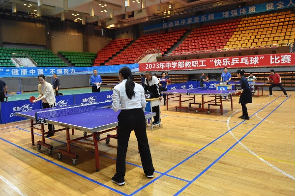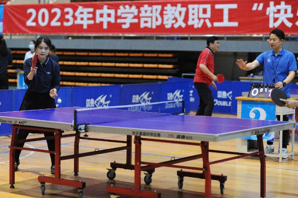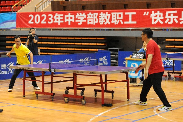 2023年4月4日下午,中学部教职工快乐乒乓球赛在文体馆拉开帷幕,此项活动由中学部党总支、工会主办,活动主题为放飞自我,用活力和汗水诠释“赛出青春,乒出活力”,旨在为教职工提供一个放松身心、交流经验的机会。比赛由7支队伍派出最强精英参加,分为初赛、半决赛、决赛三个阶段,采用单淘汰赛制进行,选手抽签决定出场顺序。