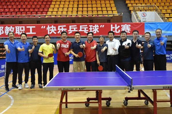 赛场上选手热情高涨,场下观众掌声不断,大声呼喝,球飞人跳。场上选手发挥出了惊人的潜力,个个都是球技精湛的“运动健将”。经过九轮激烈的角逐,终于分出了胜负。在激动人心的比赛中,最终学生处杨宁、刘坚老师分别获得男单、女单冠军,本次乒乓球赛在紧张的气氛下圆满结束。
