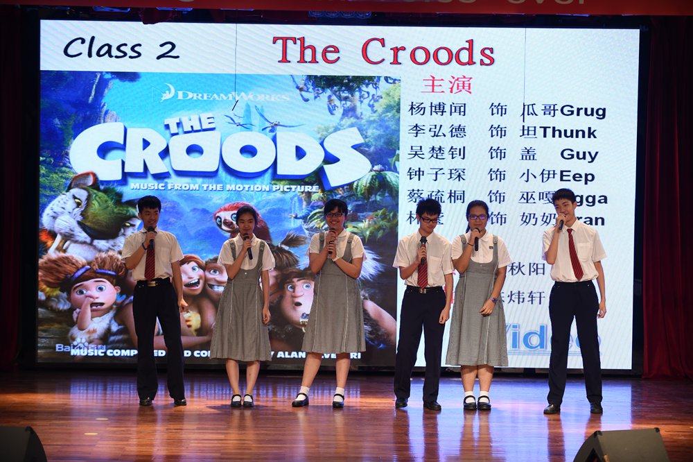 演出最充满喜剧气氛的当属二班同学。电影《疯狂原始人》里的夸张、带感的声音,通过同学们的表演,淋漓尽致的展现出来。活跃的氛围感染着每一位在场观众。