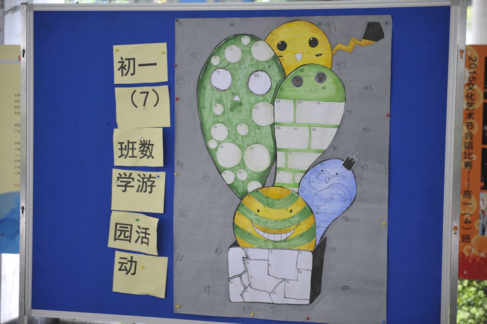 初一数学游园活动在同学们的期待和老师们的周密安排下如期开展:写着各式类型的数学趣味题的彩纸早已高挂;各班用以记录总分、更彰显了班级同学创造力和艺术气息的板报特有特色;跃跃欲试的同学们认真地紧握纸笔,自信却谨慎地拨开一道道题前的“迷雾”;班主任们更是乐在其中:询问分数,流连拍照——与班级同学们亲若挚友;数学老师则统计题目,纵览全局,临场解疑,运筹帷幄——兴致勃勃地为下一次更上一层楼的准备细细斟酌。