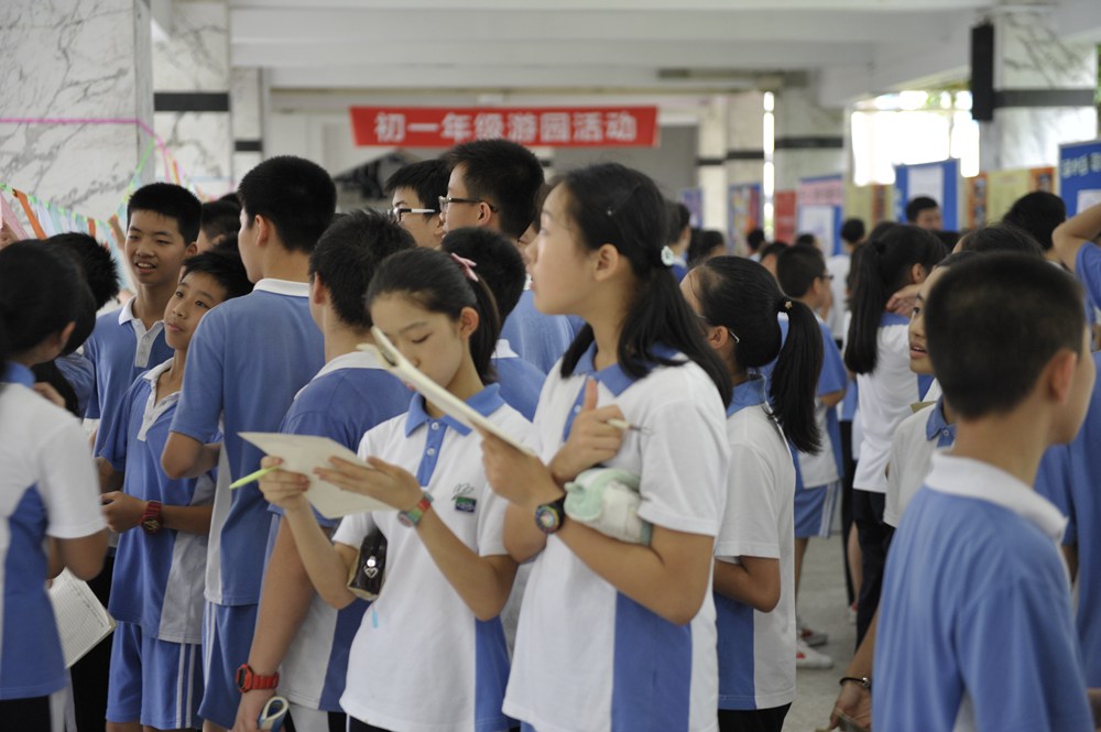 5月19日下午,中学部教学楼一楼大厅人声鼎沸,气氛热烈。