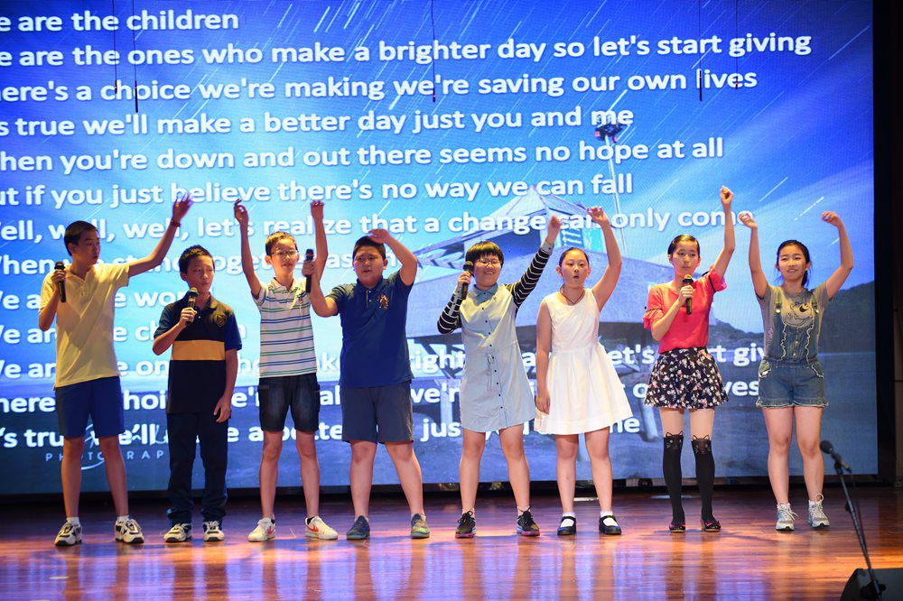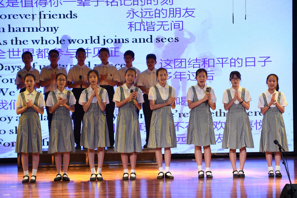 我们不会忘了一班八位同学演唱的“Good time”,此歌唱出了我们的心声。是啊,我们每天在学校的日子,不就是最美好的时光吗?我们不会忘了二班五位女生霸气十足的爵士舞。我们不会忘了三班深情歌唱的“Forever Friends”。我们不会忘了四班青春阳光、活力四射的“What makes you beautiful”。我们也不会忘了五班大气深沉的“You raise me up”。不会忘了六班鼓舞人心的“Shine your way”。不会忘了七班同学深情歌唱的“We are the world”。更不会忘了八班热情似火的“Firework”。