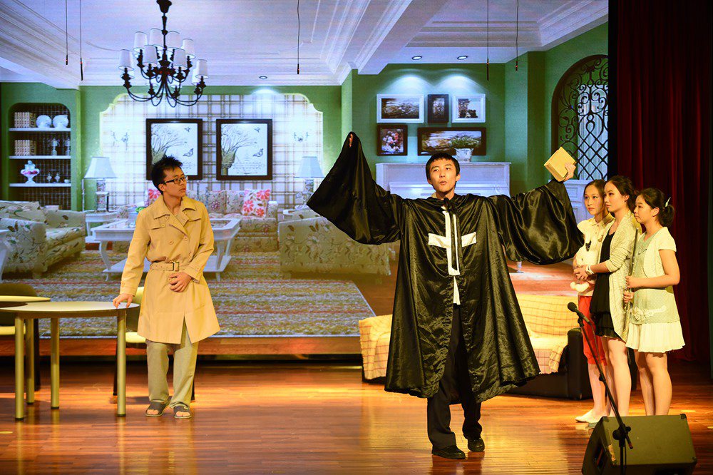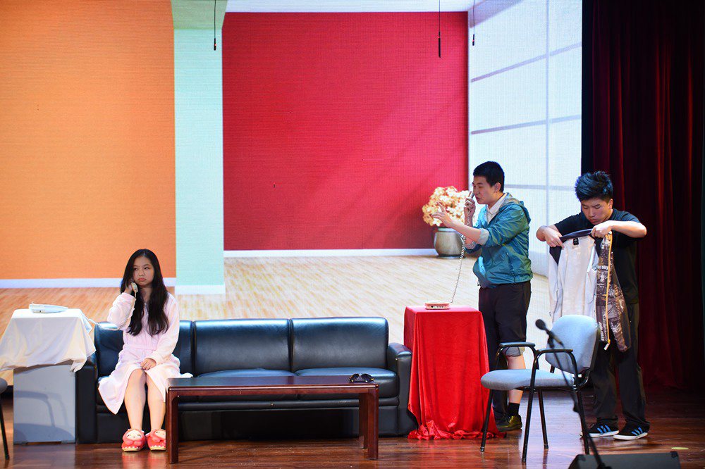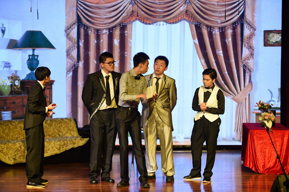两个专场共上演8个剧目:初二年级有课本剧《变色龙》、课本剧新编《鸿门宴》、课本剧《刘道元活出殡》、校园剧《戏里戏外》;高二年级有国外经典剧目《物理学家》、经典讽刺剧《钦差大臣》、当代都市喜剧《他和他的两个老婆》、经典小说改编《如果一切可以重来》。整个选材涵盖古今中外,形式上有课本剧、名剧、小说改编以及原创课本剧。从选择剧本、组织演员、日常排练到服装、道具、布景的设计,每个环节都充分发挥了同学们自主创新的能力,在老师们的悉心指导下,奉献了一场场精彩夺目的演出。