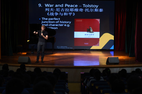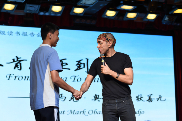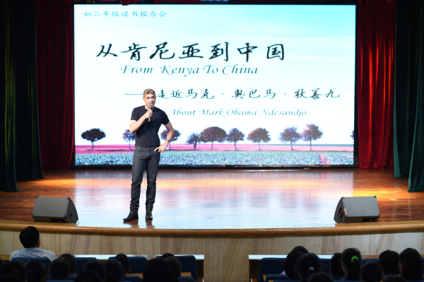 6月2日下午,马克·奥巴马·狄善九先生来到我校中学部,为初一、初二同学带来一场与众不同、精彩纷呈的读书报告会。
