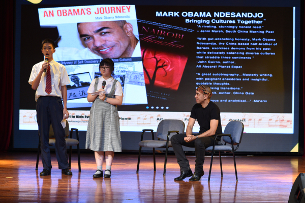 狄善九先生一上场就用熟练的中文和大家打起招呼,令人无比亲切,现场洋溢着轻松愉悦的情绪。他亦庄亦谐,言辞礼貌,没有架子,浑身上下充满了感染力,与在场的初二年级同学很快打成了一片。“同样的微笑,一脉相承的眼神,只能说这是老奥巴马先生魔术师般的杰作。”美国《国际先驱论坛报》记者曾这样形容美国总统奥巴马和他同父异母的弟弟马克·奥巴马·狄善九。