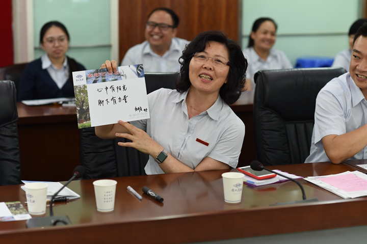 在校长款款的祝福与深情的嘱咐中,青年教师们写下的自己的青春宣言:以梦为马,不负韶华!青春在于奋斗!脚踏实地,仰望星空……如沐春风,如获至宝,我们年轻人的心中,已如火燎原,久久不息。“立鸿鹄志、做奋斗者!”这也是习近平总书记对当代青年的嘱托。吾等正青春,理当立潮头,奋发为教育! (文/章凡丽 图/靳军强)