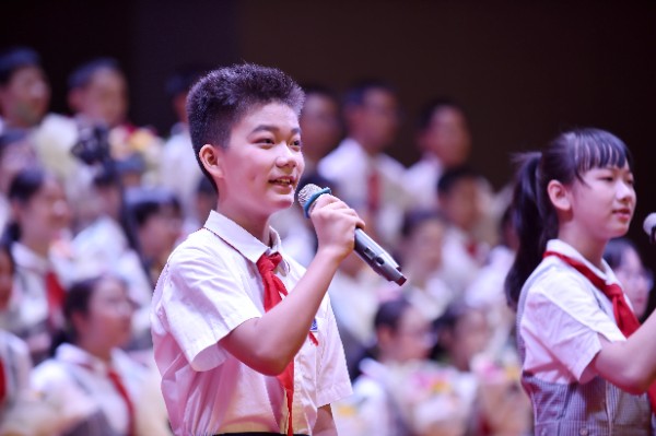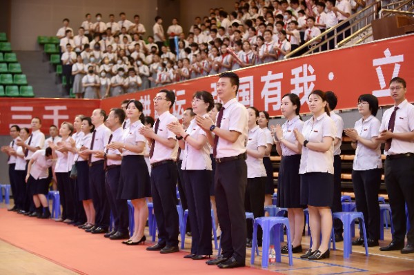 躬耕教坛,强国有我;立德树人,培根铸魂;育人育师,走深走实。伴随着同学们热烈的掌声和热情的欢呼声,老师们与同学和家长们挥手互动着步入会场。在全体高唱国歌后,全场一起观看了展现中学部老师们上课风采的视频。当看到一张张自己熟悉的老师面孔时,现场的同学们都激动地欢呼着。