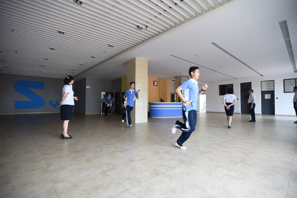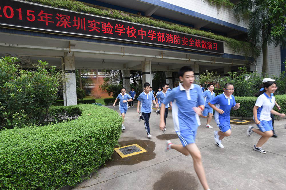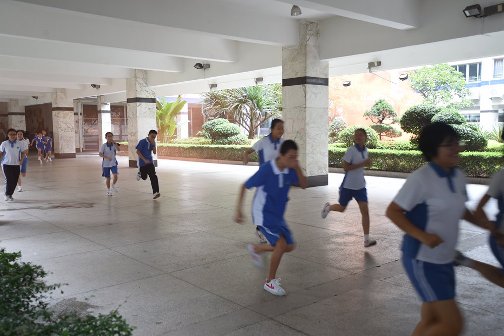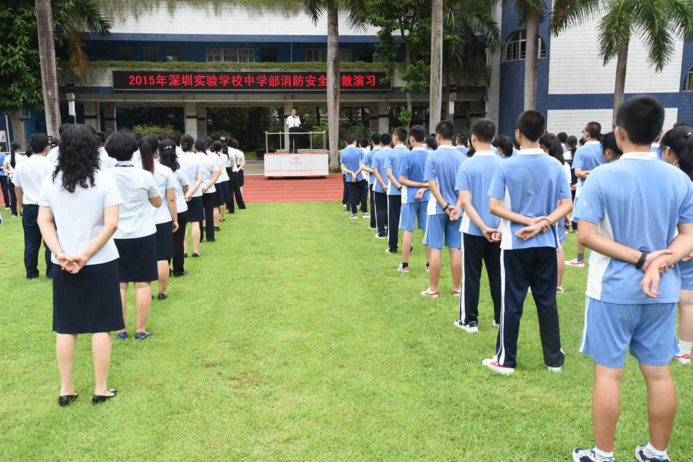 当天下午,一阵急促的警报声拉开了中学部师生安全疏散演习,听到警报声各位老师立即到达指定楼层和通道,指导学生快速疏散,各班班主任带领学生弯着腰、捂住口鼻,沿着学校制定楼梯通道快速撤离并有序到达学校操场的安全地带,随即各班清点人数并层层向上汇报。本次安全疏散演习得到各级领导和相关部门的高度重视,园岭派出所消防专干也来到我校指导演习工作;龙萍副校长、王飞副校长以及集团相关领导也参加了本次疏散演习。