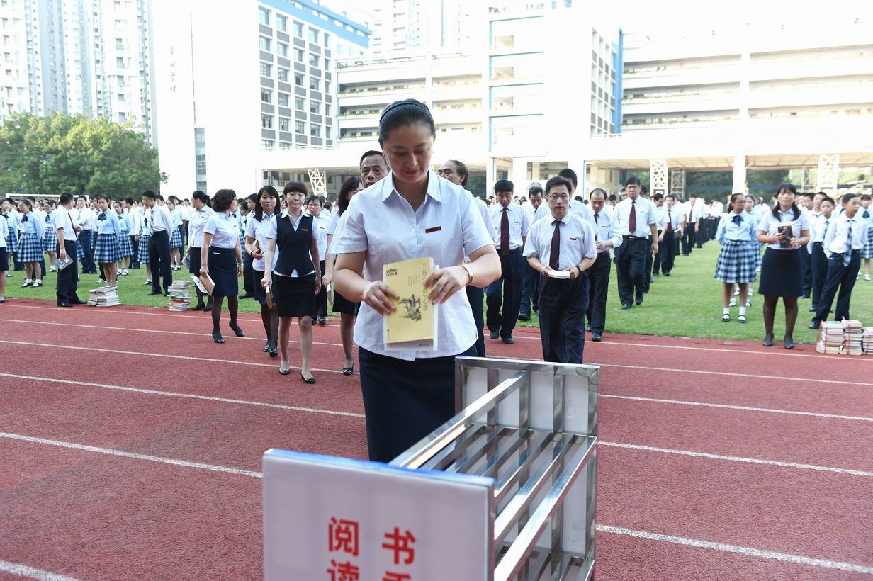 “捐出一本书,传承中华魂”的图书捐赠活动。学校团委发起倡议:全体师生每人至少捐出一本书,用于丰富各楼层读书角,移动书柜,与他人共享。在全体师生和家长积极踊跃地参与下,此次捐书活动共筹集各类书籍1500多本,并为深圳市捐书活动捐出500多本书。