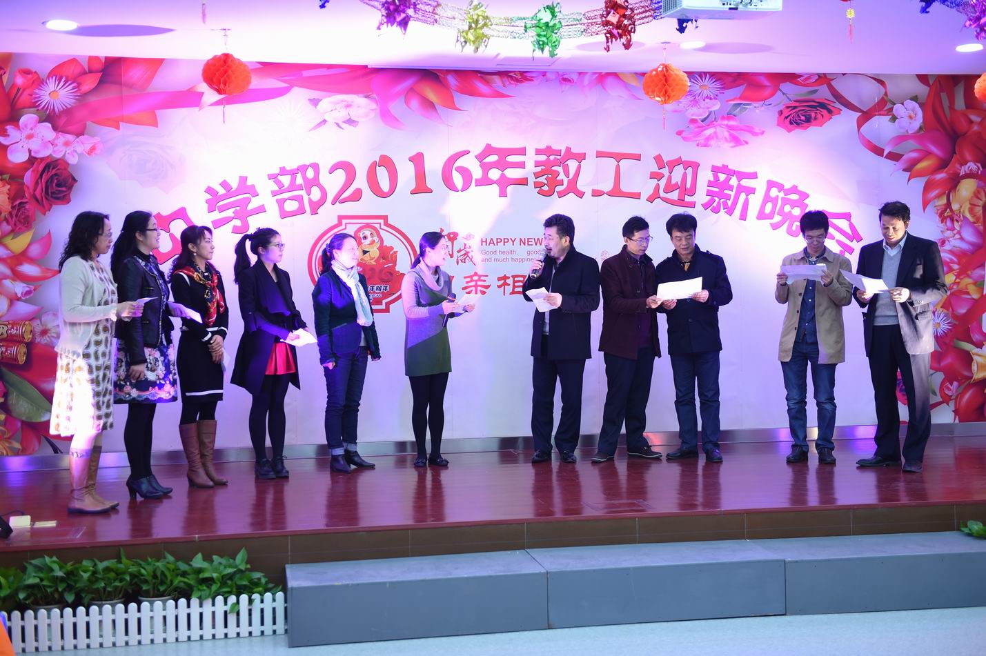 最后,在欢快的乐曲声中教工们互致新年问候,共同迎接充满希望的2016年。(文/周养平 图/靳军强)