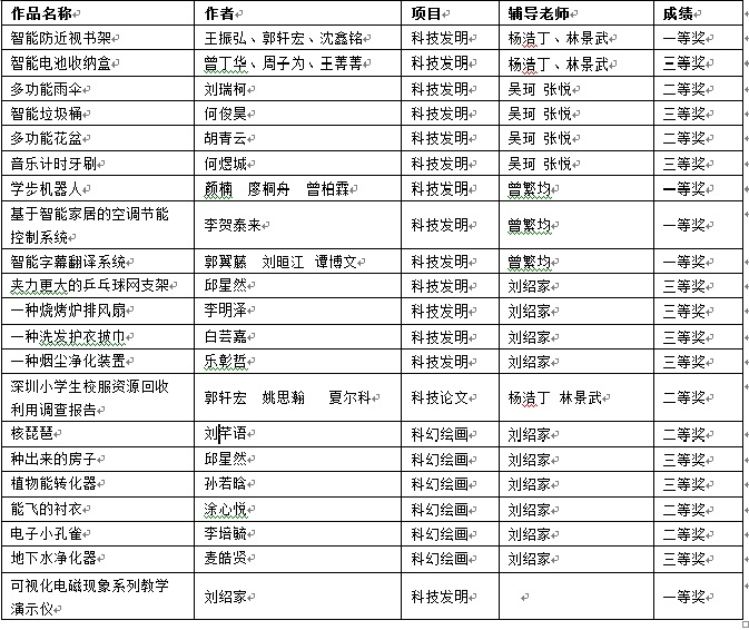 我校选送了21件科技作品参加了本届大赛的展示交流。经过多轮的答辩和展示评比,我校选手取得了优异成绩,荣获科技发明项目四个一等奖,二个二等奖,七个三等奖;科技论文项目一个二等奖;科幻绘画项目三个二等奖,三个三等奖和科技辅导员项目一个一等奖;其中三个一等奖项目,将晋级参加广东省的第31届青少年科技创新大赛。获奖名单如下:
