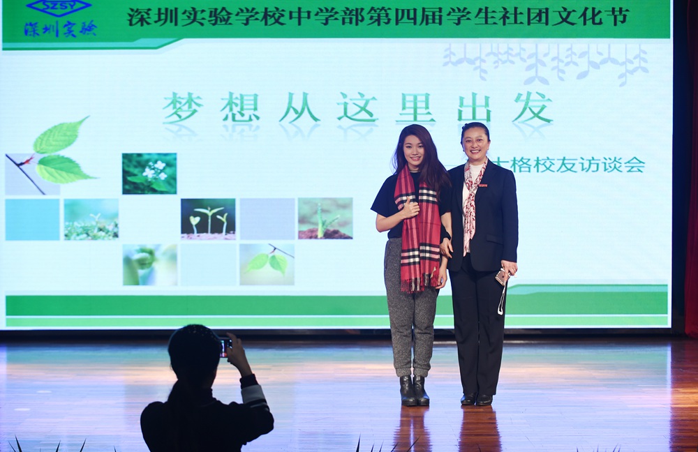赵大格在活动的现场互动环节也表示,实验学校一直贯彻的健全人格教育理念对她人格的塑造起了重要影响,同时她也鼓励同学们去坚持做自己所热爱的事情,学会利用好时间平衡学业与兴趣的共同发展。在访谈会的最后同学们纷纷上台和赵大格合影留念,为这次活动画上了圆满的句号。