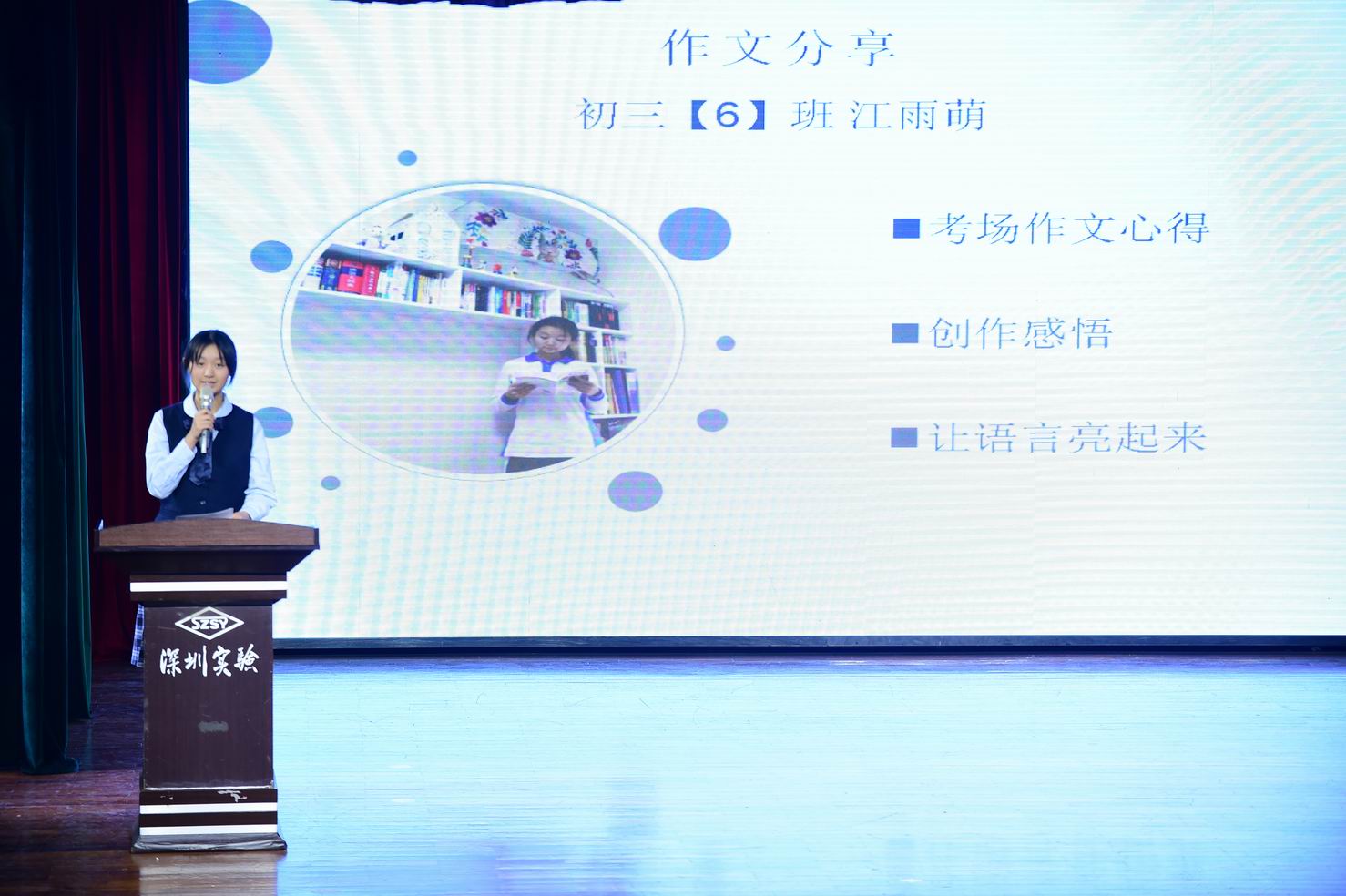 12月10日下午,深圳的冬天,仍有暖暖的阳光。中学部的小礼堂内,更是暖意融融。初三全年级师生以及部分同学的家长齐聚小礼堂,开启了一段美好的作文分享时光。