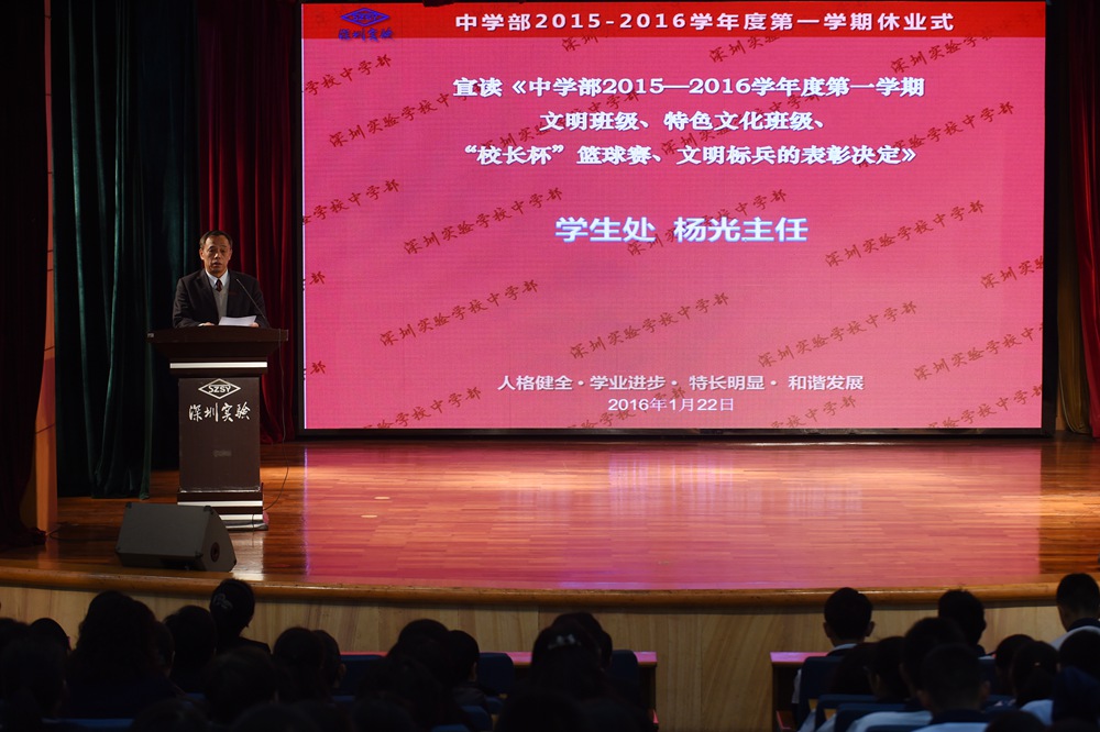 春暖花开,微笑向暖。相信,中学部全体师生会再接再励,不断进取,不断创新,以新姿态迎接美好、温暖的2016。祝愿中学部全体师生度过一个快乐而又充实的寒假,祝愿深圳实验学校的明天更加美好。(文/学生处 图/电教室)