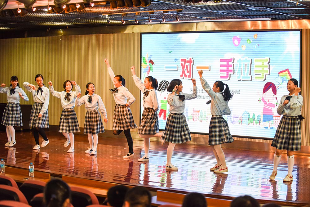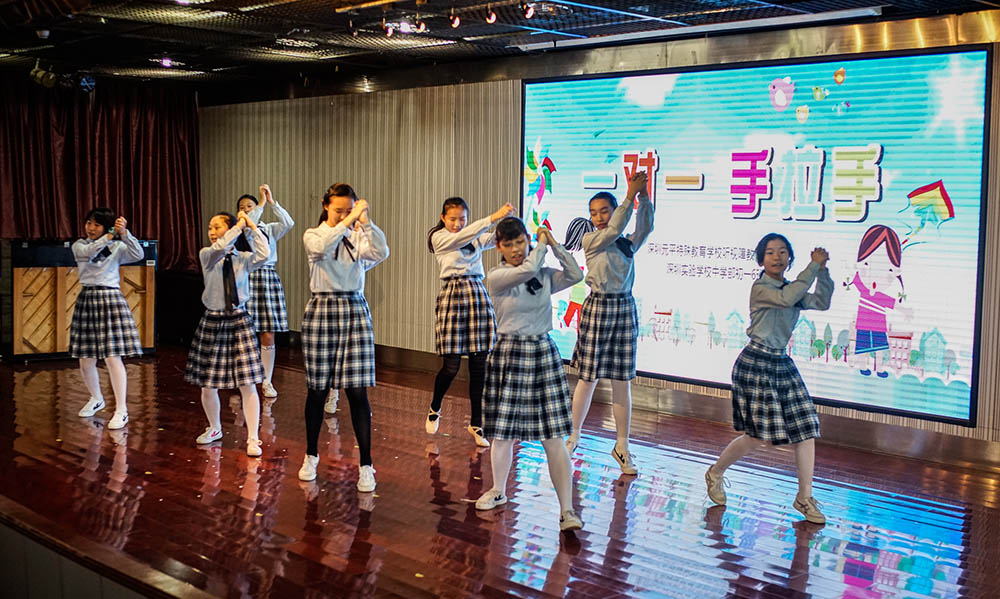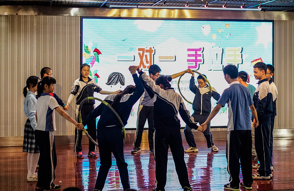 4月8日下午,我校中学部初一(6)班37名同学和部分科任老师,在班主任闫月静老师的带领下,到深圳元平特殊教育学校,与听视障部的36名初中学生开展了“手拉手”联谊活动。