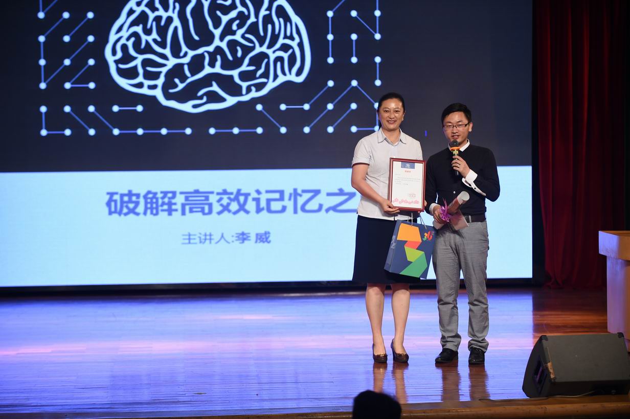 5月16日下午,“中国超级大脑人才库”成员李威来中学部为同学们揭示大脑的秘密,并带领大家一起走进“记忆力”。两个多小时的讲座,他讲述了自己在学习和工作时代对记忆力的理解与实践,并以实例来展示他超凡的记忆力。最后他用生动的例子为同学们讲解促进记忆的方法。老师和同学们认真听讲,积极参与,在如何提高记忆力方面也有所收获。