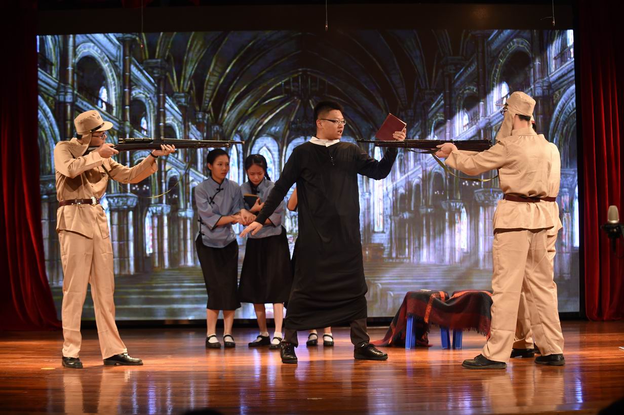 5月19日下午,高二年级在小礼堂演出了精心排练的三台话剧,分别是《羊脂球》、《猴爪》、《金陵十三钗》。从改编剧本到正式演出,学生们表现出了浓厚的热情和令人赞叹的编演能力。舞台帷幕拉开,演员们便快速地引领观众们进入了戏剧世界,演员们的表情、动作都与人物身份、性格、经历相符,表现得十分专业;舞台布景简洁大方,音乐、画外音的使用恰到妙处。现场气氛十分热烈,三个剧目,赢得了观众们的笑声、掌声和赞叹声。(文/吴珊老师)