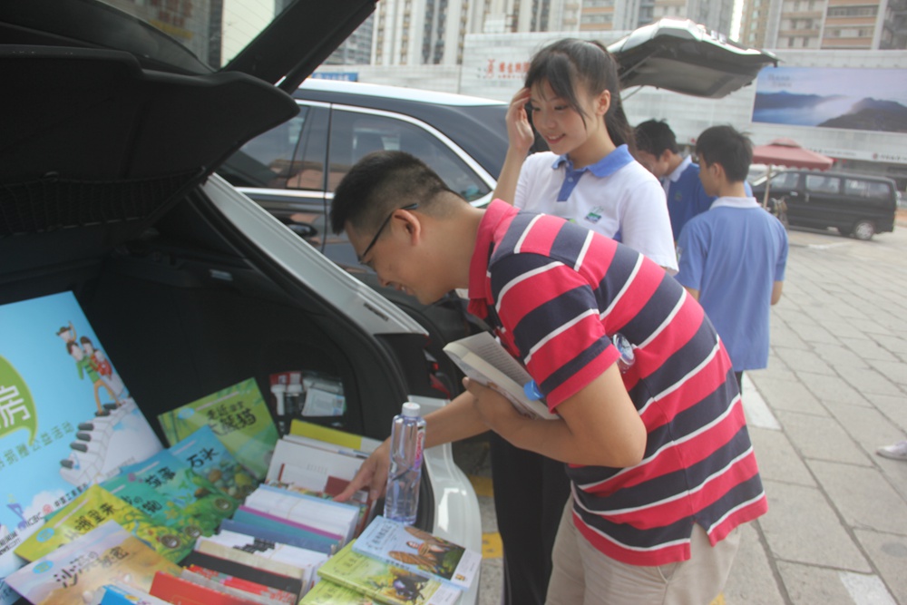 11月16日下午三点,中学部高二(3)班的八名同学和十几名家长作为代表开车来到了车尾箱换书捐书活动现场,和大家一起参加现场互动及书籍捐献活动。活动中,家长和同学们细心地分类整理书籍,以便他人翻阅;热情地为其他人介绍书籍,分享阅读感受。忙碌而充实的三小时中,学生和家长强烈的分享意识、责任意识以及乐于助人的美好风范得到了淋漓尽致的体现,他们的礼貌热情、温暖谦和也得到了活动组织者的一致好评,得到了深圳新闻网记者的高度赞扬:“深圳实验学校中学部此次来了四辆车,带来了500余本书,刚一摆出来,车位前就围满了人。记者在现场看到,深圳实验学校中学部为此次车尾箱捐换书活动准备的书籍质量非常高,种类也十分丰富,涵盖了童话故事,文学名著,历史,人物传记等多个类别,其中以广大中小学生非常喜爱的书籍为主,并在活动结束时,将带来的500余本书全部捐献出去。”