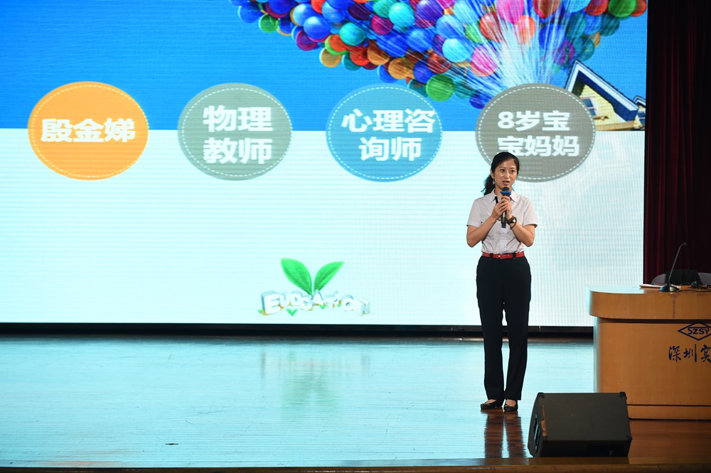 随后,中学部殷金娣老师就“家庭教育那些事---人的个体发展”为主题,做了专题讲座。身为一名物理教师、国家心理咨询师、深圳义工的殷老师,自学育儿心理学,关注亲子关系,热心公益事业,在深圳义工联组织的多场育儿分享交流活动中,担任讲师,与广大市民、家长共享家庭教育经验,并将所学理论知识传递给更多的家庭。在本次家庭教育论坛上,殷老师主要围绕多元智能理论和人的基本能力两个内容展开,涉及亲子沟通、个体发展的影响因素等方面,从实际出发,从生活中的真实案例引入,针对家长们关心的孩子教育问题,用理论做支撑,为家长们带了一场既生动又权威的育儿指导交流讲座。为了更好地达到效果,论坛前特别设计问卷调查,搜集整理了家长们在家庭教育中的困惑;论坛后,又引导家长们将参与的体会和感悟进行反馈。