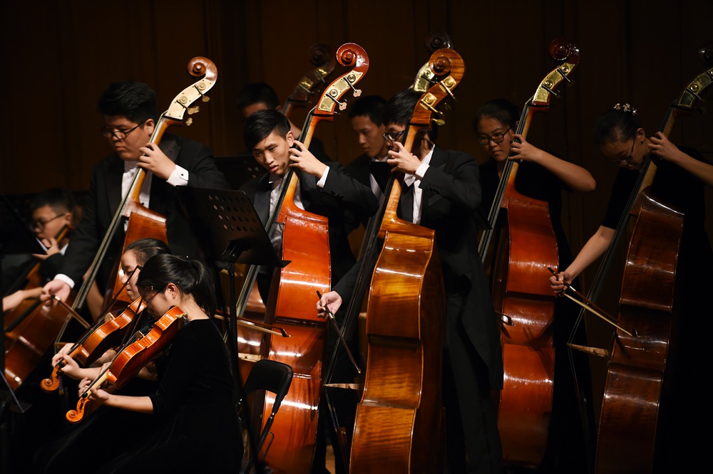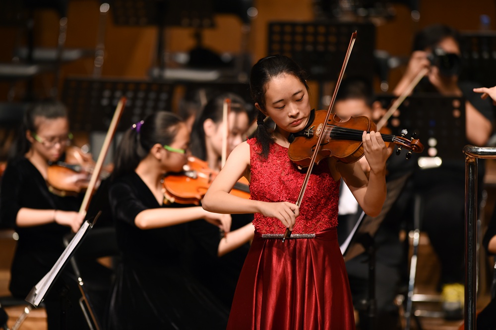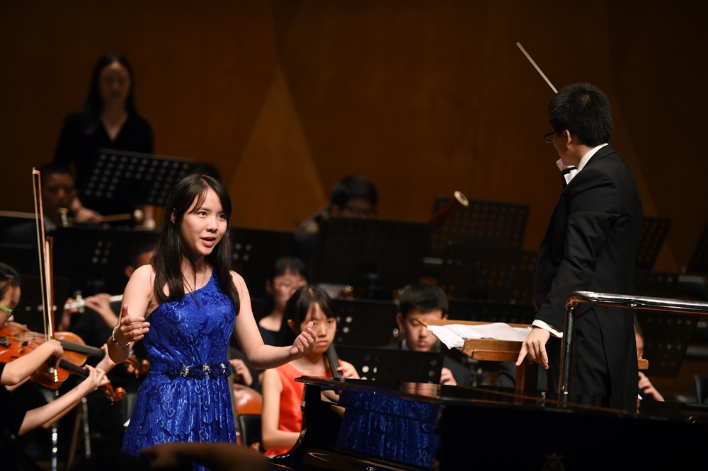 下半场,校乐团的乐手们又一次用完美的表演征服了观众。情感色彩丰富作曲家肖邦的作品《F小调钢琴协奏曲》在邱天燊与乐团的演绎下令人击节称赏;许宜佳和李鸿桥分别与乐团配合,先后演奏了查米纳德的《长笛协奏曲》和音乐大师韦伯的《降E大调黑管协奏曲》。女高音陶致君同学的《漫步街头》《木偶之歌》咏叹调又一次创新的乐团的演出形式,天籁之音与乐团的演绎交织在一起,余音袅袅,不绝于耳。法国作曲家奥芬巴赫的名曲《地狱中的奥菲欧》,激昂雄壮、富有激情的旋律将音乐会推向了高潮。大剧院的音乐厅再一次被深圳实验学校学生交响乐团完美的演出沸腾起来。