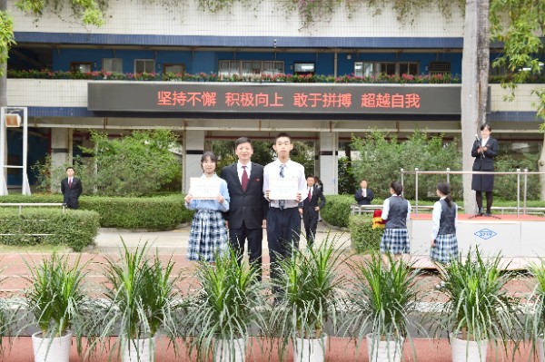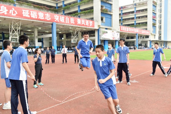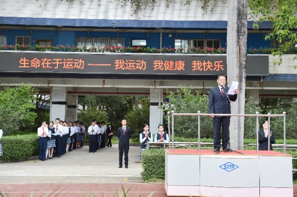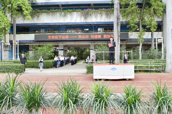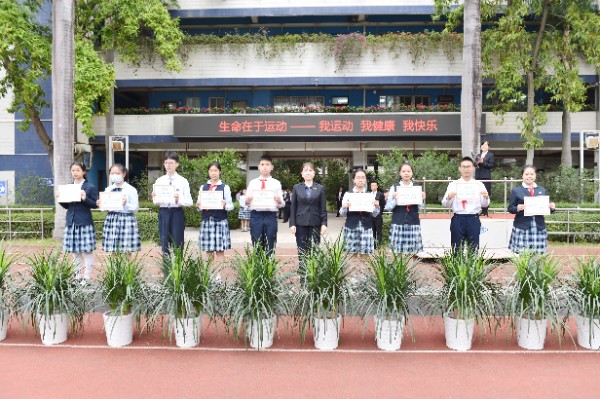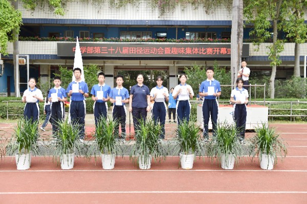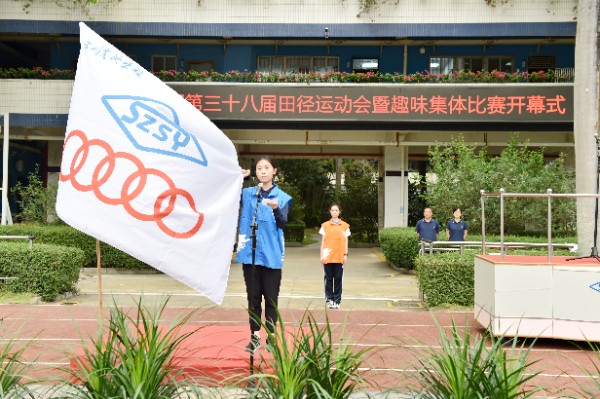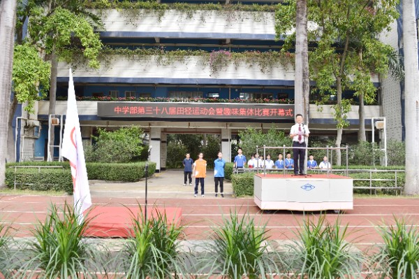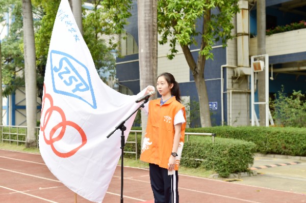 开幕式上,全体师生高唱校歌,注视校旗、会旗缓缓升起,象征着奥林匹克精神会旗在校园中迎风飘扬。随后,中学部副部主任王兵宣读了“十佳体育特长生”的表彰决定,深圳实验学校副校长、中学部执行校长龙萍一一为获奖学生颁奖。紧接着,运动员代表、裁判员代表分别进行了赛前宣誓。