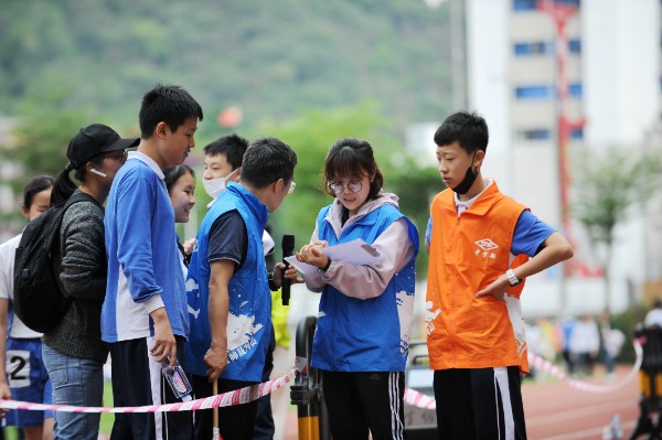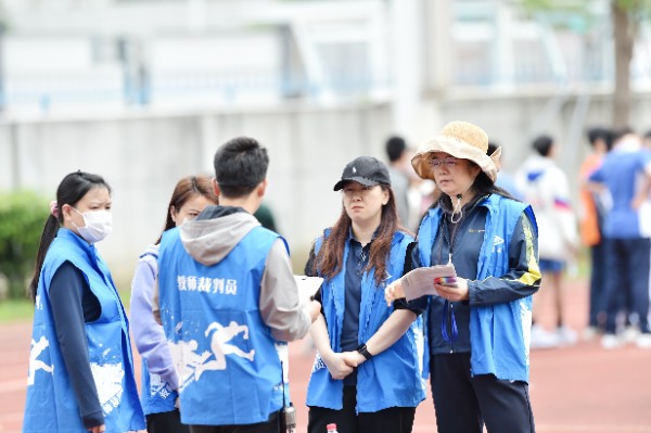 幕后,黄色马甲的学生裁判,蓝色马甲的教师裁判,红色马甲的志愿者,他们为运动会的顺利进行,为运动员取得更好的成绩,坚守在自己的岗位上,默默奉献。