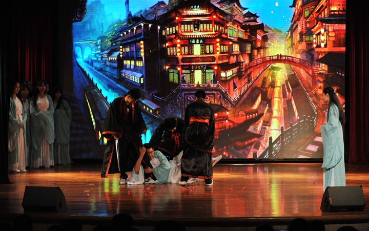 在激动人心的开场音乐中,器乐社的一曲摇滚乐《Holiday》拉开了社团专场的序幕。摇滚的旋律带动着现场的气氛,在这青春的节奏里,连空气都充满着活力;在拾阅社团带来的视频中,拾阅带我们领略了中国古文的神奇与中国文化的博大精深;悦音社张梦月同学的一首《Yellow》与器乐社的钢琴独奏《前前前世》,两首唯美的乐曲让同学们沉迷其中;电脑社的云打印技术是一个不需要电脑,由手机直接把文件发送到打印机打印的技术,希望同学们与电脑社一起集思广益,发明创造更多便利生活的小技术;民俗文化社的相声风趣幽默,逗得台下的老师哈哈大笑,同学们更是笑作一团。在相声的最后,给大家揭示了一个人生道理:我们要脚踏实地的生活,要勇于去抓住机会、把握机会,不要去做白日梦,整天的白日梦是不会让我们成功的;舞蹈社的同学带来了劲舞,台下的同学看得目不转睛,赞声连连;古风社与戏剧社联合出演的舞台剧。一波三折的剧情让观众们看得津津有味;动漫社的视频展示了动漫社社员的风采,社员创作的作品更是让人称赞;最后悦音社的一首歌曲《A Thousand Year》,不仅有强大的伴奏阵容,更有张梦月、蒋紫晴两位同学的亲情演绎,动人歌声完美诠释了《A Thousand Year》的内涵。锦瑟无端五十弦,一弦一柱思华年,本届社团文化节的首演,在同学们的欢呼声中完美收官,专场的成功举办要感谢各社团的精心准备和辛苦排练,更要感谢学生会、社团部的各位同学的辛勤付出与努力。