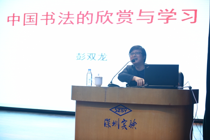 5月8日下午15:50,我校艺术节书法讲座在五楼小礼堂隆重举行。这次活动邀请了中国书法家协会成员、中国书法最高奖“兰亭奖”得主、书法篆刻最高奖得主彭双龙老师莅临讲座。初一年级300多名学生共同聆听了讲座。