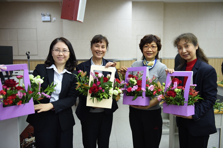 时间在手中流走,却在花中停留,不知不觉,一篮篮美丽的鲜花仿佛被赋予了生命和情感,娇艳、高贵、妩媚、清新……灯光映射在花上,也照在插花人的笑脸上。做像花一样的女人,无论是在平凡的工作上,还是在回归家庭的生活中,都能绽放美丽,散发出独特的芬芳! (文/罗贤珊 图/电教室)