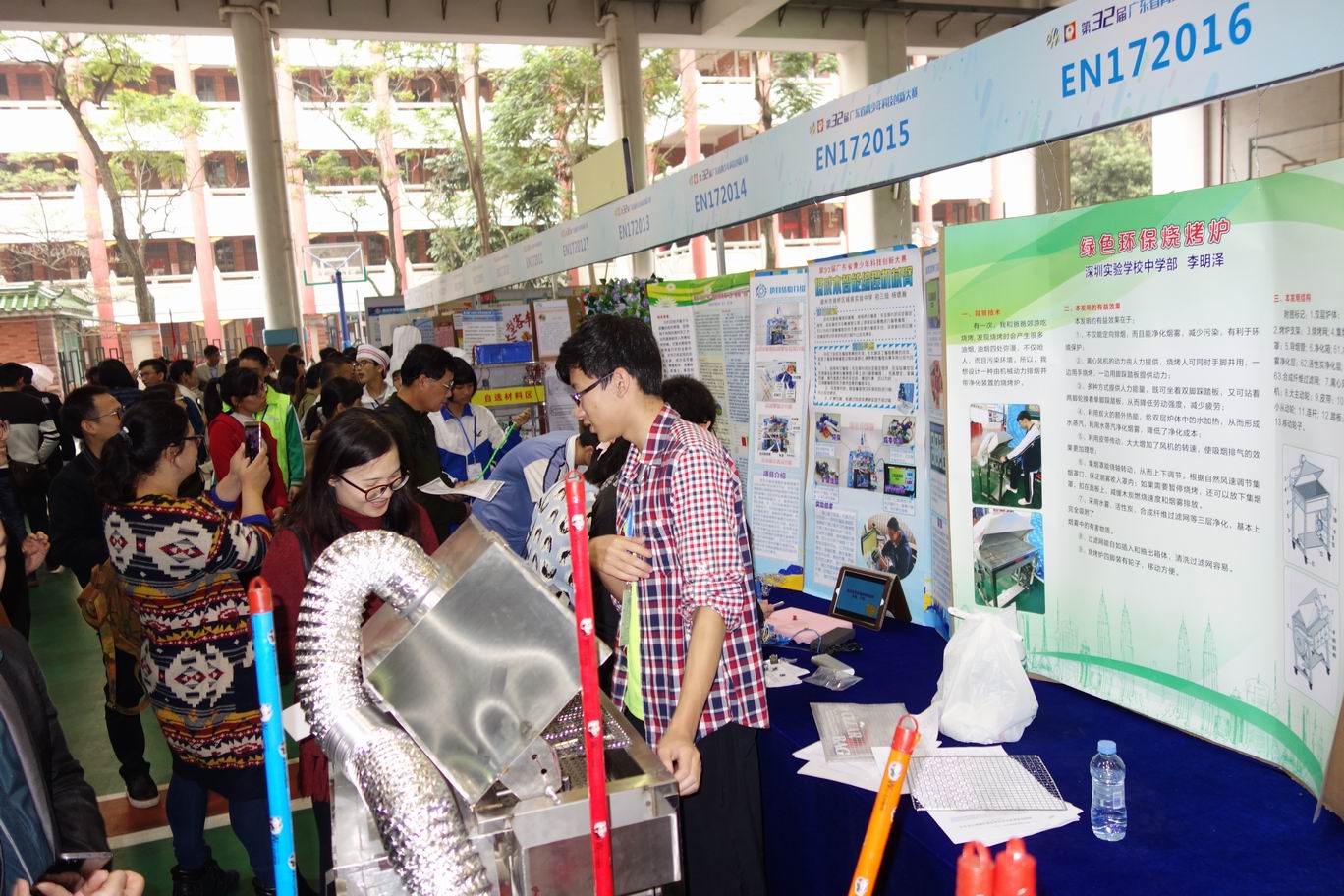 中学部初三(3)班李明泽同学提供的参赛项目“绿色环保烧烤炉”,获得科技创新项目二等奖、银奖和广东省知识产权局颁发的“专利申请奖”。