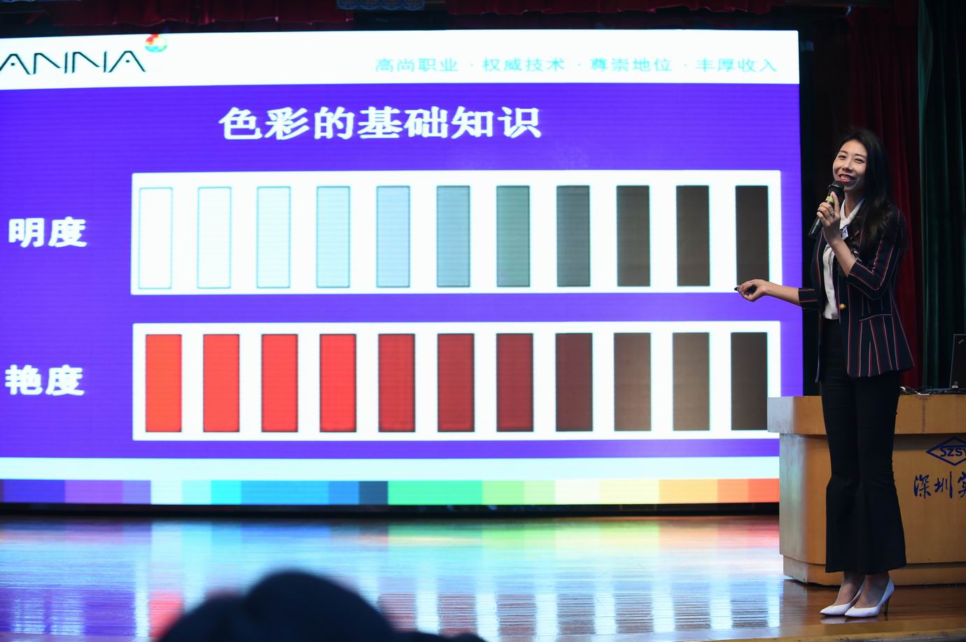 讲座主讲人吴中秋老师是资深的女性形象顾问。她是ANNA美家色彩能量导师,也是PHC色彩形象教学系统创办者和实践教学者。她不仅是中国平安团队特聘形象顾问,也曾为联想、天虹、茂业、九方、COCOPARK、深职院等企事业单位从事讲座培训。