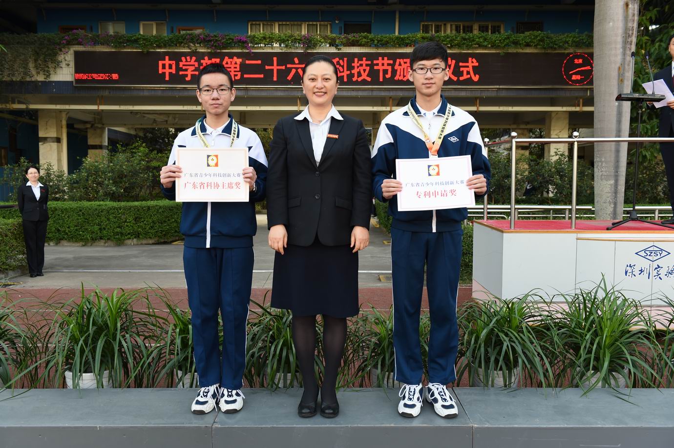 在科技节期间,传来中学部两位同学参加第32届广东省青少年科技创新大赛获得优异成绩的喜讯:初三(3)班李明泽同学提供的参赛项目“绿色环保烧烤炉”,获得科技创新项目二等奖、银奖和广东省知识产权局颁发的“专利申请奖”,高二(1)班游江山同学提供的参赛项目“多功能跨终端智能云打印系统”,获得科技创新项目一等奖、金奖和专项奖最高奖“省科协主席奖”。(文/教务处 图/电教室)