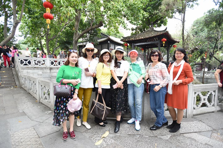 午饭之后,驱车来到第二站:清晖园。坐落在广东顺德市大良镇华盖里,是国内现存的一所著名的岭南园林。清晖园与东莞可园,番禺余荫山房,佛山梁园一起,被人称为岭南四大名园,它们代表了我国古典园林的重要一支。来到清晖园,老师们被眼前精致的景色所深深吸引,仔细了解人文历史之余,用相机频频记录着园林中的一山一水、一草一木。为了更好地欣赏园林之美,在出发前,高同宇老师特别以《诗情画意写进园林》为题,从美学、建筑学、文学等多角度,为老师们提供了宝贵的资料,使得本次活动更加有深度,内涵更加丰富。