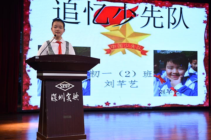 仪式上,首先由初一(2)刘芊艺同学和初一(8)刘言成同学带领我们追忆红领巾的过去,令我们感受颇深。凝视着胸前的这条红领巾,我们心中有万千感慨。它引领着我们前进,鼓励着我们拼博,承载着我们的希望与梦想。初一(7)班周子为同学带领全体同学重温入队誓词,欢快的少先队歌在耳畔回荡,戴上红领巾时的激动仿佛在眼前,队旗下那铮铮誓言还在耳畔回响——“时刻准备着!为共产主义事业而奋斗!”