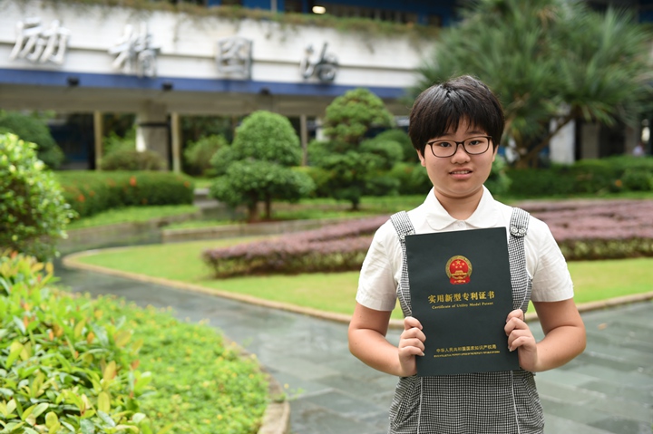 这些学生作品被推荐参加全国、省、市青少年科技创新大赛,获奖无数,再由教师帮助申请国家专利,让学生获得满满的成就感和自信心。到目前为止,学生已收到国家知识产权局专利局的五批《授权通知书》,共获得112项国家专利。周一晨会上,学校为第五批获得专利的10位同学举行了证书颁发仪式。(文/教务处 图/电教室)
