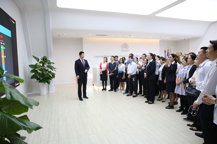 中学部的党员、教师跟随华为接待人的引导,首先参观了华为的功能展厅,了解了华为创新的ICT产品和解决方案,直观地感受了未来智慧城市、平安城市的面貌,解了智慧与科技在各行各业应用的情况,感受到科技给生活带来的便利,惊叹于科技的强大和智慧的无处不在。