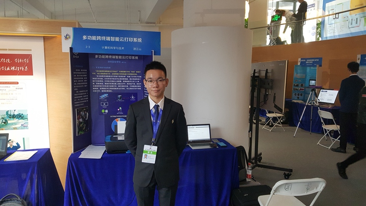游江山同学的发明——“跨终端智能云打印盒子及其系统”,克服了打印机不具备微信打印功能、打印手机中的文件必须通过电脑转换才能打印的弊端,打印机只需连上该装置,使用者就可以在个人电脑、智能电视、智能手机等设备上通过APP、网页客户端、微信平台直接控制打印机进行远程打印;该装置还可以同时控制多台打印机,同时打印不同格式的文件,操作简单方便,打印效果极佳。
