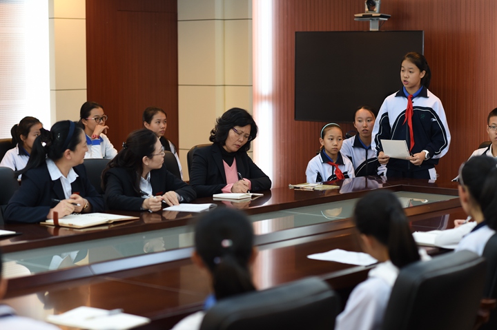 “校长见面日”是中学部的特色活动之一,连续举办了8年,学校一直在积极探索学生自主管理的模式,搭建师生与领导的对话平台,鼓励同学们积极参与学校事务,加强自主管理,积极建言献策,参与建设美丽、安全、和谐校园等方面发挥主人翁作用,深得同学们的喜爱。(文/初三6班康乐儿 图/电教室)