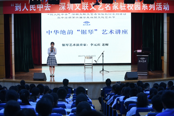 为了丰富校园生活,增强对中国优秀传统文化的了解与认识,营造健康文明、活泼向上的校园文化,在社团文化节期间,高中部特别邀请到了著名锯琴艺术演奏家李元庆老师为师生带来一场精彩的艺术讲座。