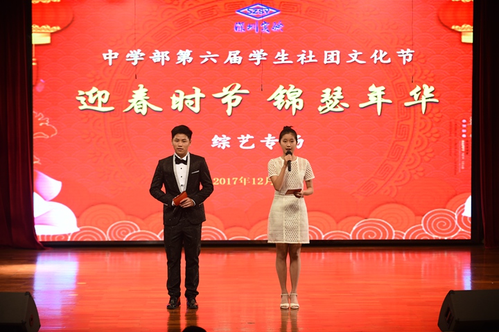 一夜秋风凋碧树,凋不了,是你无限的青春;满地余寒露凝香,凝不住,是你绝美的年华。深圳实验学校中学部“迎春时节,锦瑟年华”第六届社团文化节综艺展示专场于12月29日下午4:05在小礼堂准时拉开帷幕。我校一向致力于开展丰富的多彩校园活动,促进学生德智体美全面发展,为学生提供一个展现天赋与才华的平台。