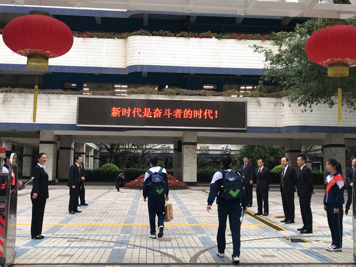 2月26日下午,深圳市教育局许建领副局长、工委办胡新天主任、安全处肖伟峰处长、安全处程锦廷科长在龙萍副校长和黄汉波副校长的陪同下对我校开学工作,特别是安全工作进行全面检查,并给予了充分肯定。