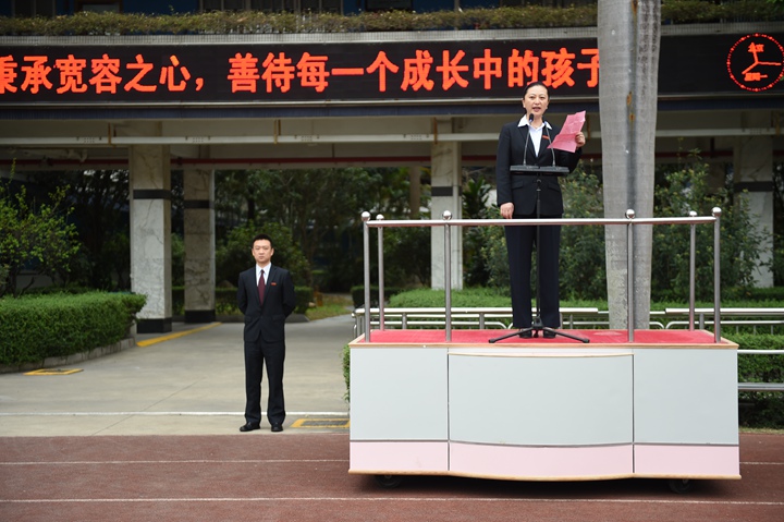 开学典礼上,龙校长作了热情洋溢的新学期致辞,向全体师生致以新学期的问候,祝全体师生在新的学期里学习进步、工作顺利、家庭幸福!