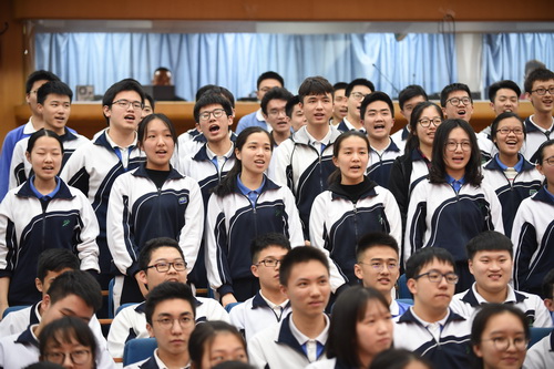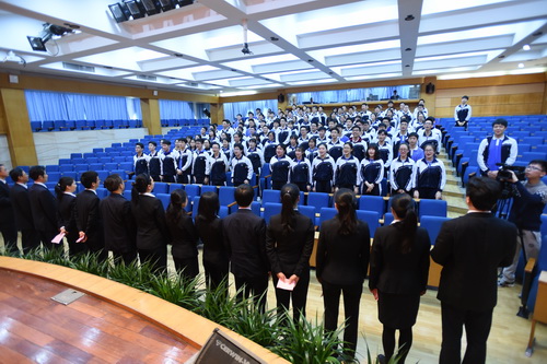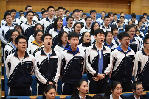 大会在校歌声中结束。当大家再次唱起校歌,有了更深刻的感动;当大家再次品味“做国家栋梁”的号召时,每个人都会感受到个人、集体、学校、国家相连相融的血脉。