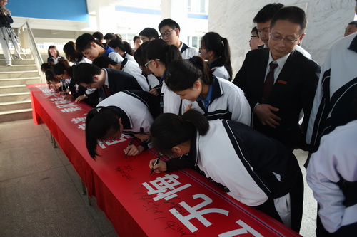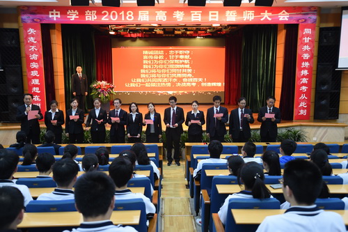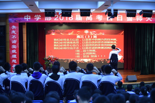 如果说十二年的求学路是长征,未来一百天就是迈向胜利的最后一段路;如果说高考是翻越高山,未来一百天就是最后一段陡峭山路。百日誓师日,是中学部全体高三学子向最后的考验发起冲击的起点。为了振士气、燃激情,我们在百日誓师这一天,沙场点兵,挥师进发。